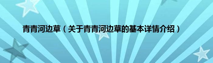 本文关于青青河边草的基本详情介绍就讲解完毕,希望对大家有所帮助。