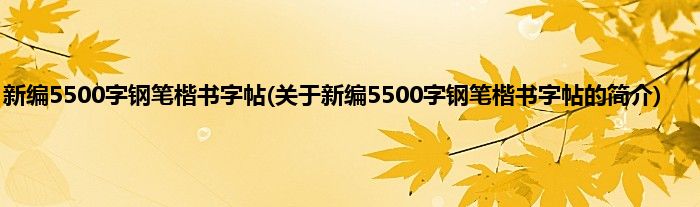 1、 《新编5500字钢笔楷书字帖》是中国名家钢笔字贴系列的新编5500字钢笔楷书字帖。