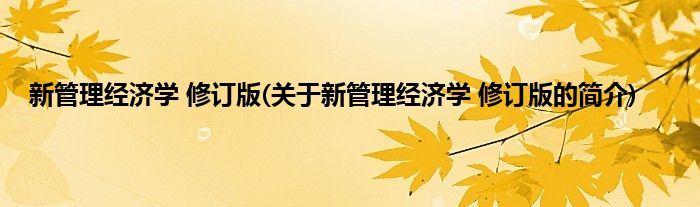 大家好,新管理经济学 修订版,关于新管理经济学 修订版的简介很多人还不知道,现在让我们一起来看看吧!