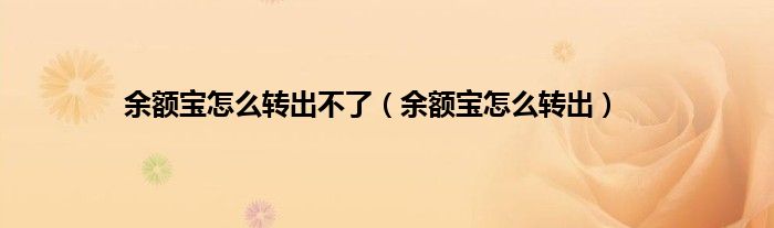 大家好,精选小编来为大家解答以上问题。余额宝怎么转出不了,余额宝怎么转出很多人还不知道,现在让我们一起来看看吧!