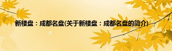 大家好,新楼盘:成都名盘,关于新楼盘:成都名盘的简介很多人还不知道,现在让我们一起来看看吧!