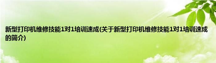 大家好,新型打印机维修技能1对1培训速成,关于新型打印机维修技能1对1培训速成的简介很多人还不知道,现在让我们一起来看看吧!
