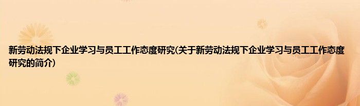 本文关于新劳动法规下企业学习与员工工作态度研究的简介就讲解完毕,希望对大家有所帮助。