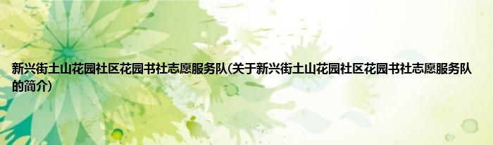 本文关于新兴街土山花园社区花园书社志愿服务队的简介就讲解完毕,希望对大家有所帮助。