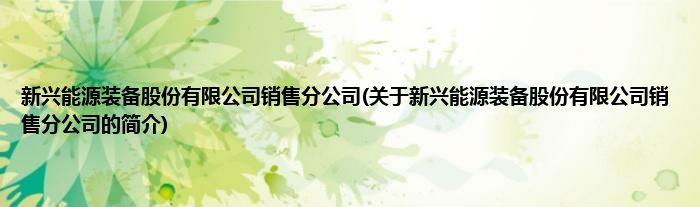 本文关于新兴能源装备股份有限公司销售分公司的简介就讲解完毕,希望对大家有所帮助。