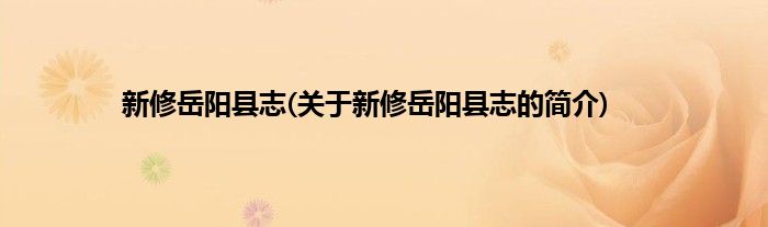 1、 新修岳阳县志是民国4年[1915]由新昭石印公司出版的湖南省岳阳市地方志。