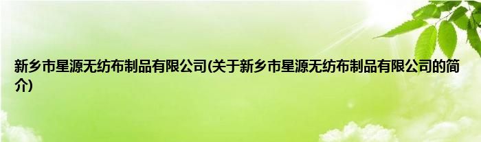 本文关于新乡市星源无纺布制品有限公司的简介就讲解完毕,希望对大家有所帮助。