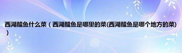 大家好,小科来为大家解答以上问题。西湖醋鱼什么菜,西湖醋鱼是哪里的菜(西湖醋鱼是哪个地方的菜)很多人还不知道,现在让我们一起来看看吧!