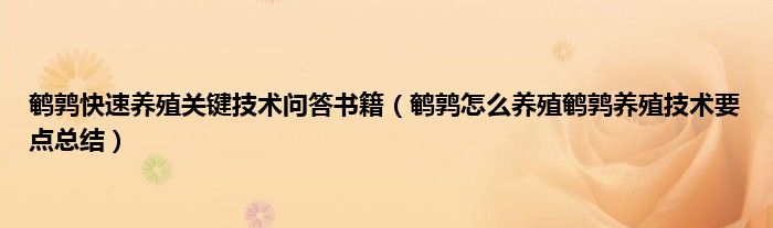 大家好,小科来为大家解答以上问题。鹌鹑快速养殖关键技术问答书籍,鹌鹑怎么养殖鹌鹑养殖技术要点总结很多人还不知道,现在让我们一起来看看吧!