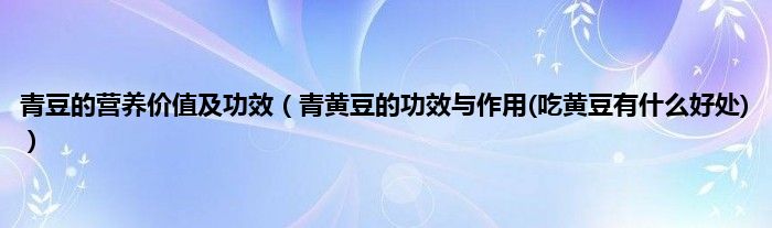 大家好,小科来为大家解答以上问题。青豆的营养价值及功效,青黄豆的功效与作用(吃黄豆有什么好处)很多人还不知道,现在让我们一起来看看吧!