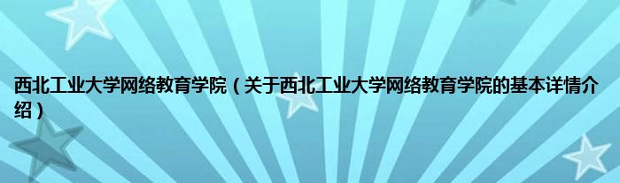 本文关于西北工业大学网络教育学院的基本详情介绍就讲解完毕,希望对大家有所帮助。