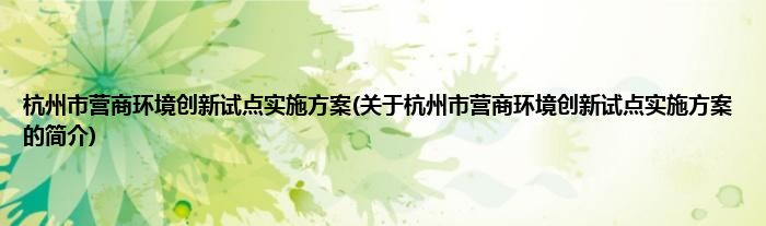 本文关于杭州市营商环境创新试点实施方案的简介就讲解完毕,希望对大家有所帮助。