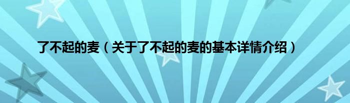 本文关于了不起的麦的基本详情介绍就讲解完毕,希望对大家有所帮助。
