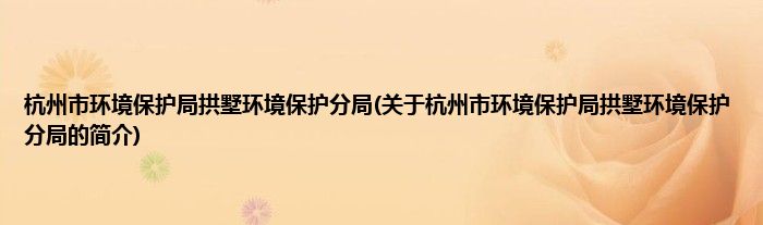 大家好,杭州市环境保护局拱墅环境保护分局,关于杭州市环境保护局拱墅环境保护分局的简介很多人还不知道,现在让我们一起来看看吧!
