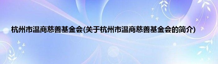 本文关于杭州市温商慈善基金会的简介就讲解完毕,希望对大家有所帮助。
