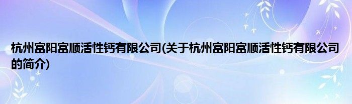 本文关于杭州富阳富顺活性钙有限公司的简介就讲解完毕,希望对大家有所帮助。