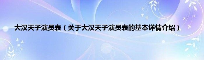 本文关于大汉天子演员表的基本详情介绍就讲解完毕,希望对大家有所帮助。