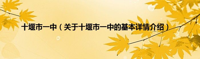 本文关于十堰市一中的基本详情介绍就讲解完毕,希望对大家有所帮助。