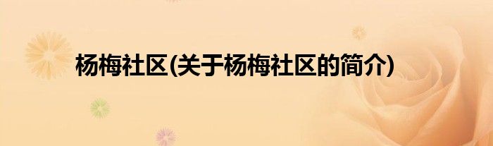 大家好,杨梅社区,关于杨梅社区的简介很多人还不知道,现在让我们一起来看看吧!