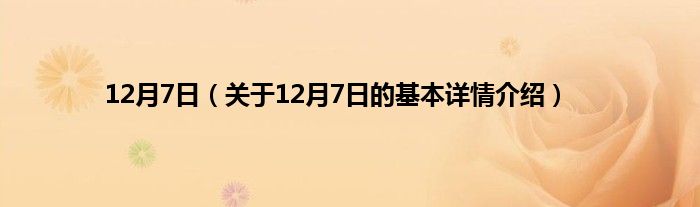 本文关于12月7日的基本详情介绍就讲解完毕,希望对大家有所帮助。