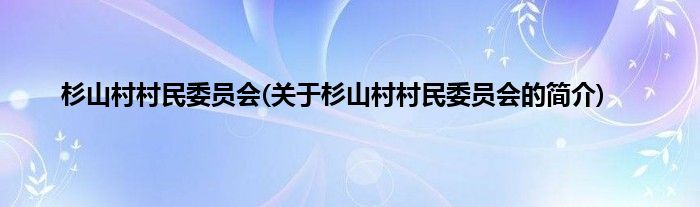 本文关于杉山村村民委员会的简介就讲解完毕,希望对大家有所帮助。