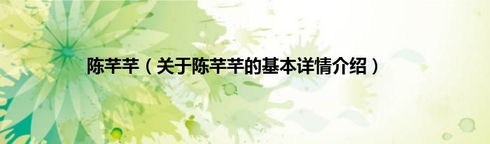 本文关于陈芊芊的基本详情介绍就讲解完毕,希望对大家有所帮助。