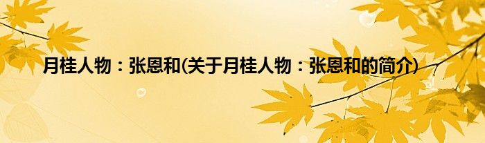 本文关于月桂人物:张恩和的简介就讲解完毕,希望对大家有所帮助。
