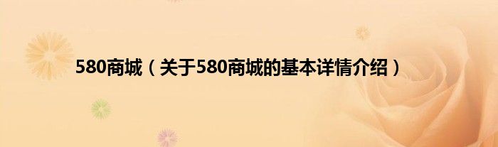 本文关于580商城的基本详情介绍就讲解完毕,希望对大家有所帮助。