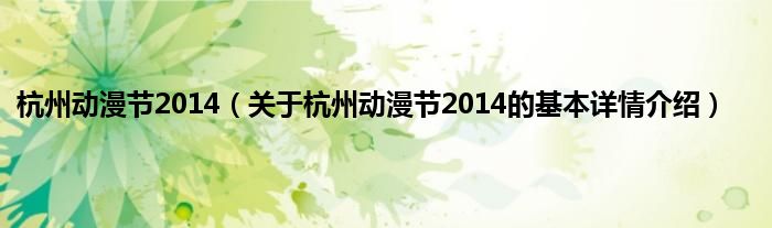 本文关于杭州动漫节2014的基本详情介绍就讲解完毕,希望对大家有所帮助。