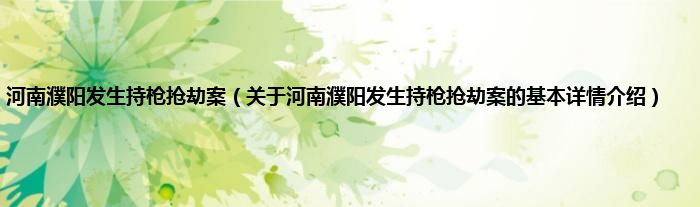本文关于河南濮阳发生持枪抢劫案的基本详情介绍就讲解完毕,希望对大家有所帮助。