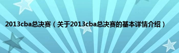 本文关于2013cba总决赛的基本详情介绍就讲解完毕,希望对大家有所帮助。