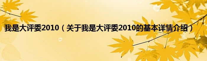 本文关于我是大评委2010的基本详情介绍就讲解完毕,希望对大家有所帮助。