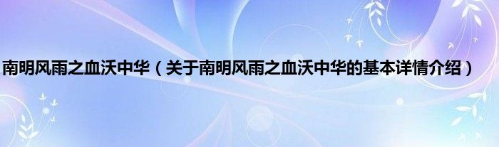 大家好我是小蝌蚪,南明风雨之血沃中华,关于南明风雨之血沃中华的基本详情介绍很多人还不知道,那么现在让我们一起来看看吧!