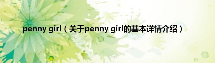本文关于penny girl的基本详情介绍就讲解完毕,希望对大家有所帮助。