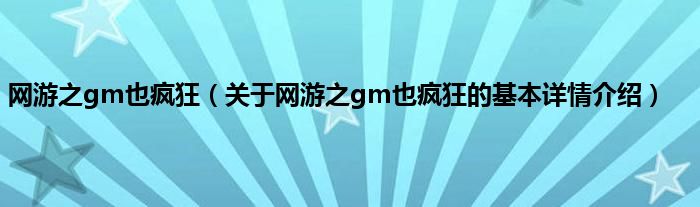本文关于网游之gm也疯狂的基本详情介绍就讲解完毕,希望对大家有所帮助。