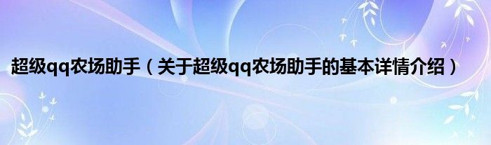 本文关于超级qq农场助手的基本详情介绍就讲解完毕,希望对大家有所帮助。