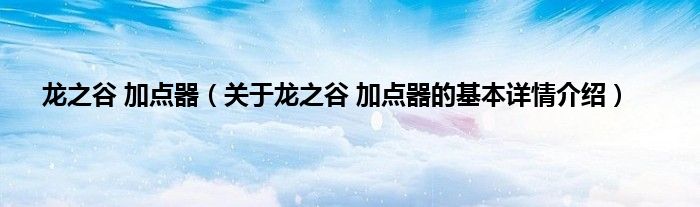 本文关于龙之谷 加点器的基本详情介绍就讲解完毕,希望对大家有所帮助。