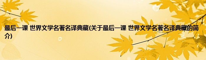 最后一课世界文学名著名译典藏(关于最后一课世界文学名著名译典藏的简介)