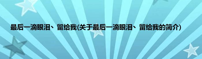 本文关于最后一滴眼泪丶留给我的简介就讲解完毕,希望对大家有所帮助。