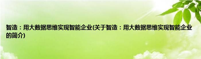 本文关于智造:用大数据思维实现智能企业的简介就讲解完毕,希望对大家有所帮助。