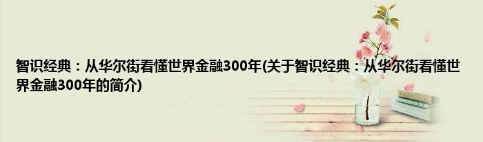 本文关于智识经典:从华尔街看懂世界金融300年的简介就讲解完毕,希望对大家有所帮助。