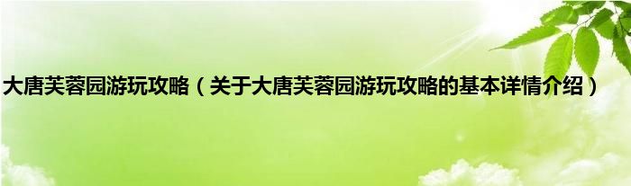 本文关于大唐芙蓉园游玩攻略的基本详情介绍就讲解完毕,希望对大家有所帮助。
