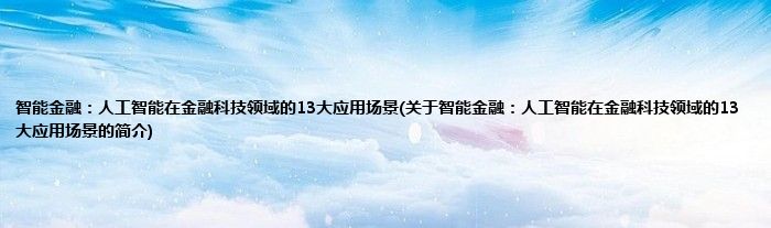 智能金融:人工智能在金融科技领域的13大应用场景(关于智能金融:人工智能在金融科技领域的13大应用场景的简介)