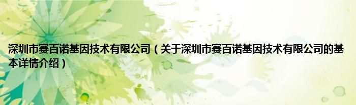 本文关于深圳市赛百诺基因技术有限公司的基本详情介绍就讲解完毕,希望对大家有所帮助。