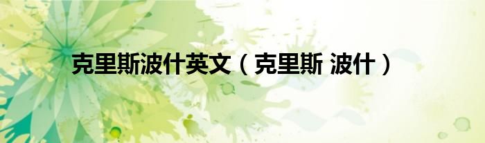 大家好,小问来为大家解答以上问题。克里斯波什英文,克里斯 波什这个很多人还不知道,现在让我们一起来看看吧!