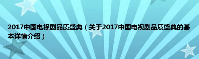 本文关于2017中国电视剧品质盛典的基本详情介绍就讲解完毕,希望对大家有所帮助。