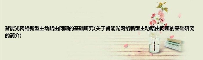 本文关于智能光网络新型主动路由问题的基础研究的简介就讲解完毕,希望对大家有所帮助。