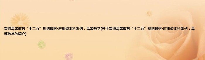 本文关于普通高等教育“十二五”规划教材·应用型本科系列:高等数学的简介就讲解完毕,希望对大家有所帮助。