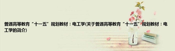 大家好,普通高等教育“十一五”规划教材:电工学,关于普通高等教育“十一五”规划教材:电工学的简介很多人还不知道,现在让我们一起来看看吧!