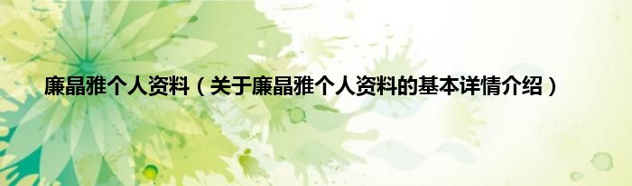 本文关于廉晶雅个人资料的基本详情介绍就讲解完毕,希望对大家有所帮助。